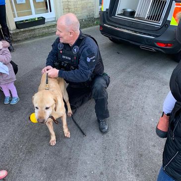 Police Officer Mark also brings his Police Dogs to meet us. He has a special police car, so the dogs can go in the back. He tells us the jobs that his dogs do with him.
