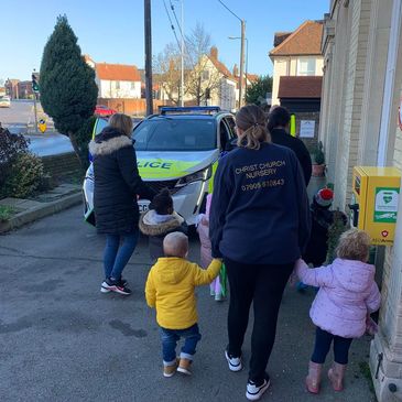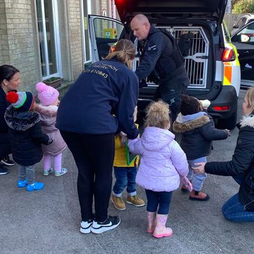 We learn all about what a Police Officer does, we dress up in his uniform, use his radios & get to sit in his car!
