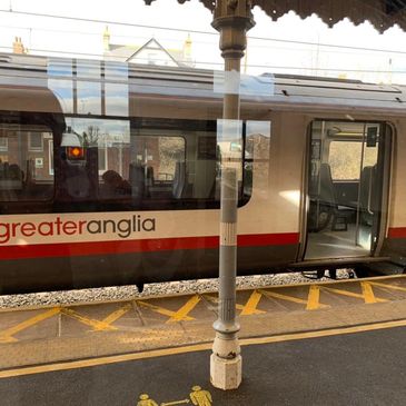 The ride to Witham from Braintree isn't very long. When we get there we are able to walk up the platform, & have a look at all the trains.